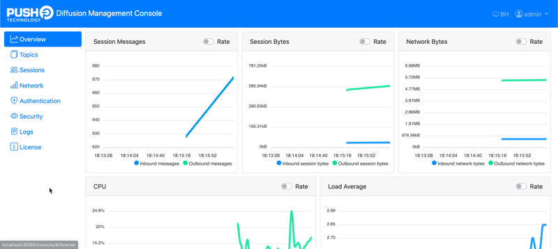 The Diffusion management console is an optional feature. It is deployed by default. It exists to give you an easy way to monitor and manage your Diffusion solution using a web browser.